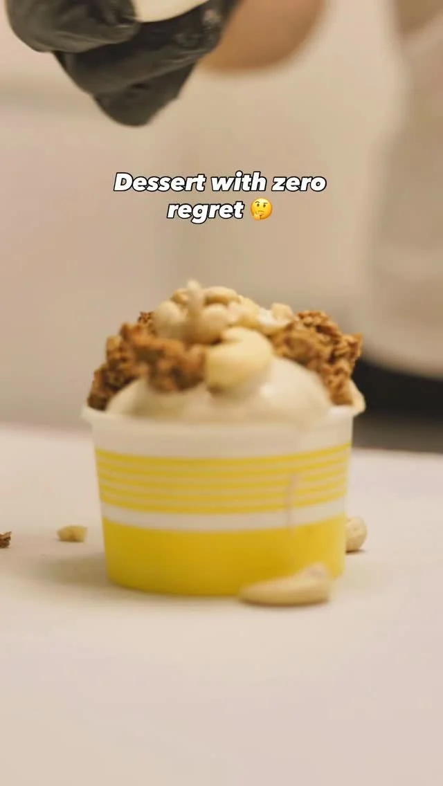 Banana whip topped with cashews, crunchy granola, and a drizzle of golden honey. The perfect mix of creamy and crisp in every bite.